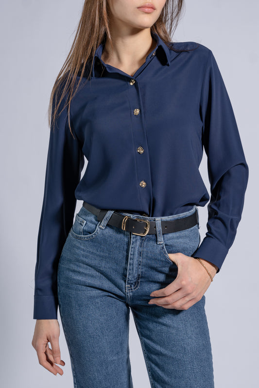 Satin Classic Shirt With Gold Buttons