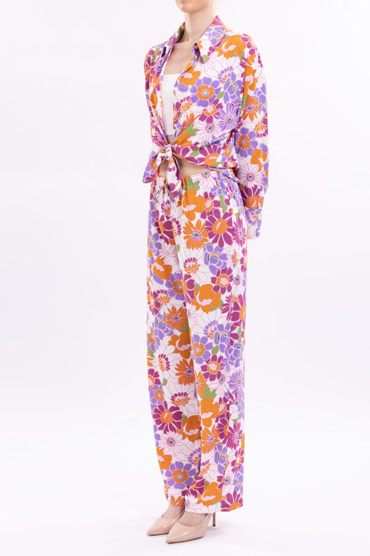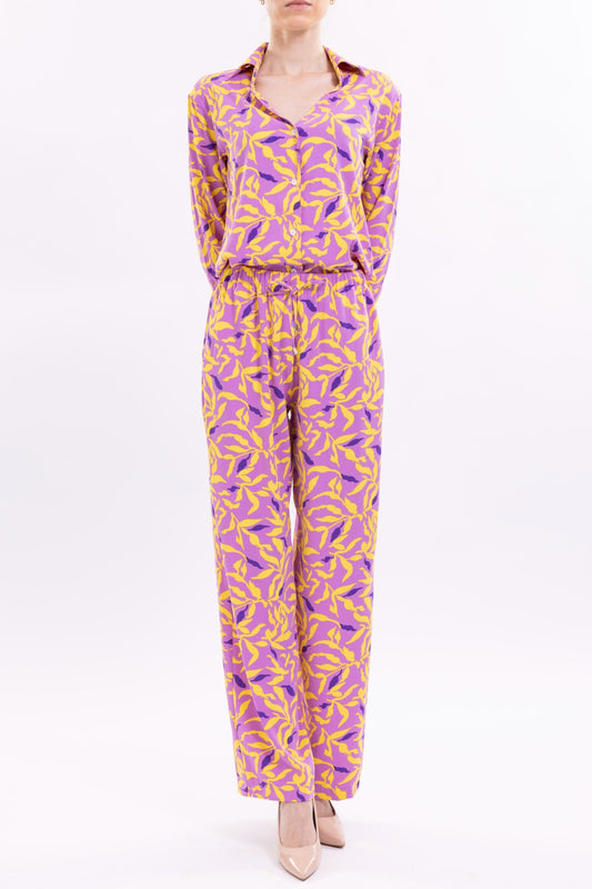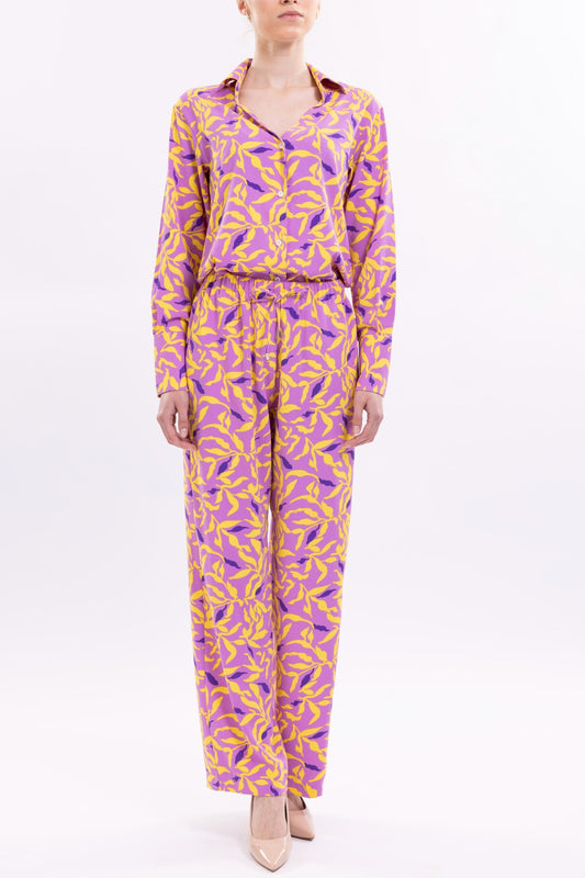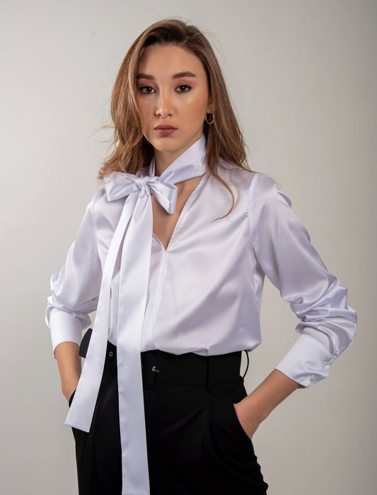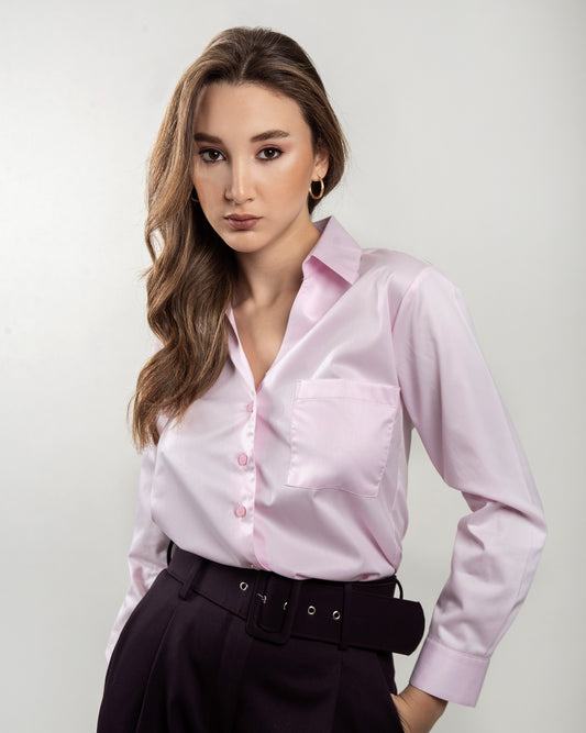Collared V-Neck Shirt With Long Sleeves and Front Buttons