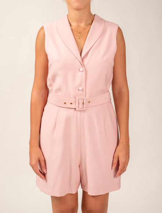 Sleeveless Short Jumpsuit Featuring Shawl Lapel and a Waist Belt