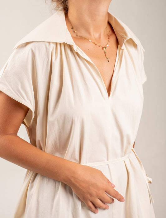 Sleeveless Dress Featuring a Collar and Thin Waist Belt