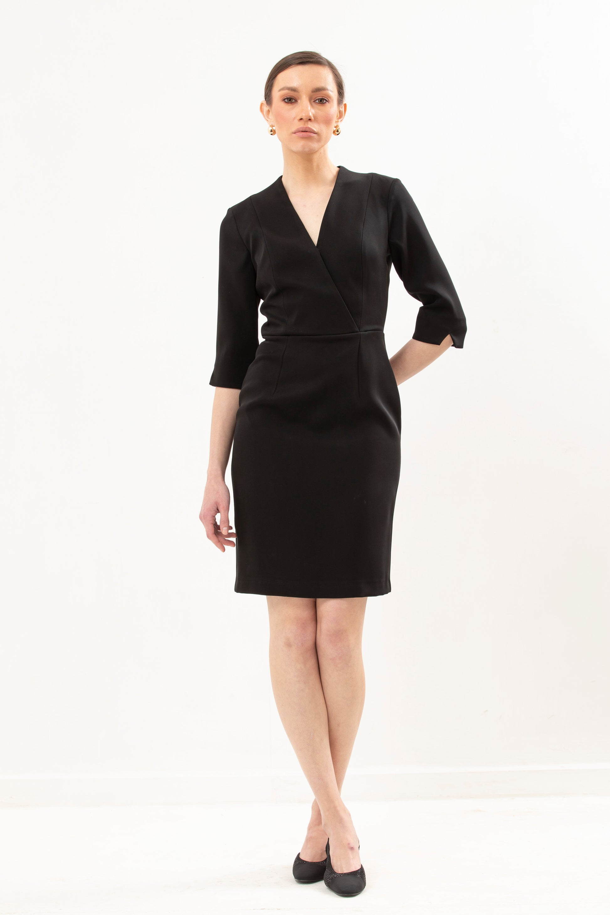 Basic V-neck Dress Featuring 3/4 Sleeves