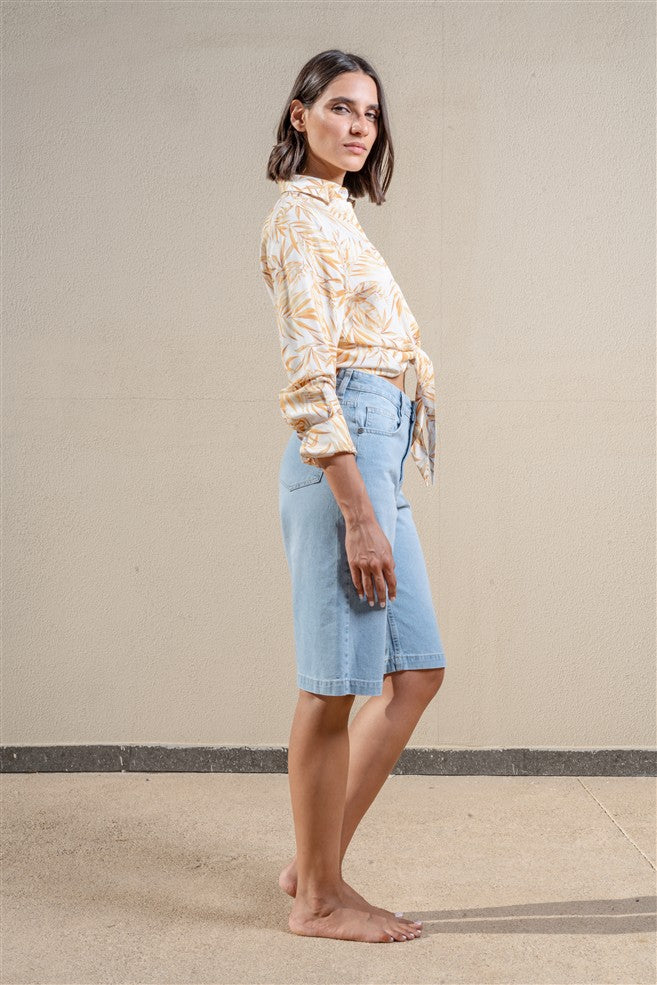 Denim Cotton Jacket with Corduroy Collar and Front Metal Buttons