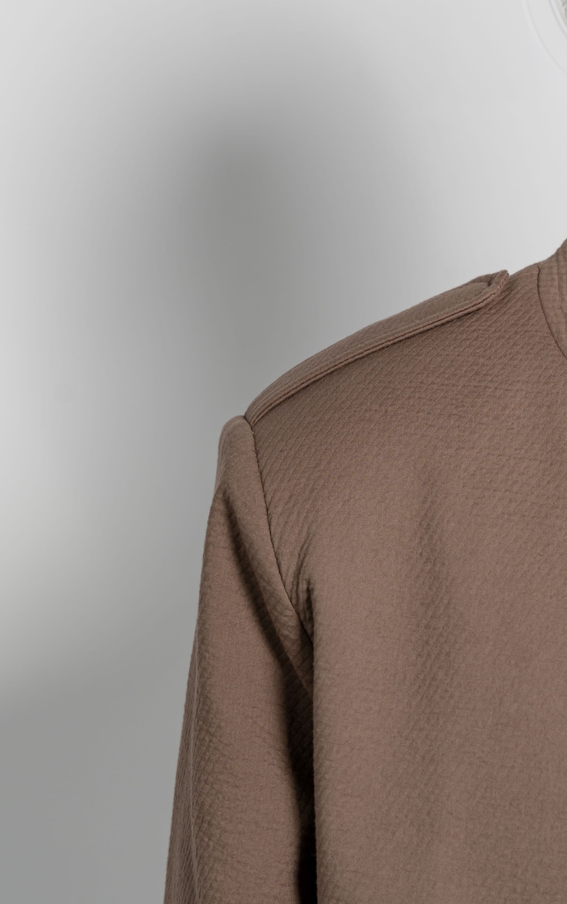 Short Tweed Jacket with a Round Neckline, Patch Pockets and Metal Buttons