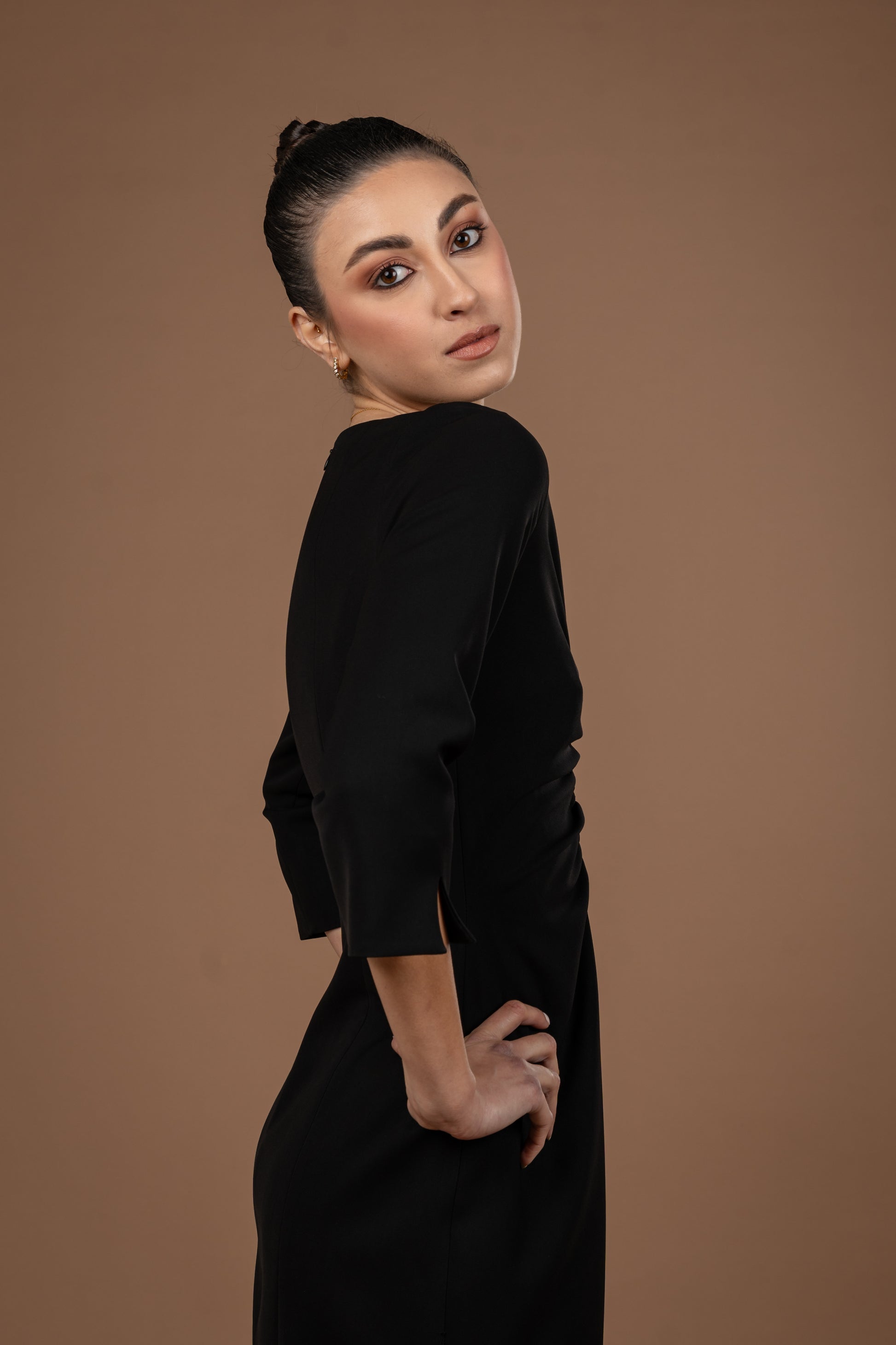 Gathered Midi Dress With Long Sleeves
