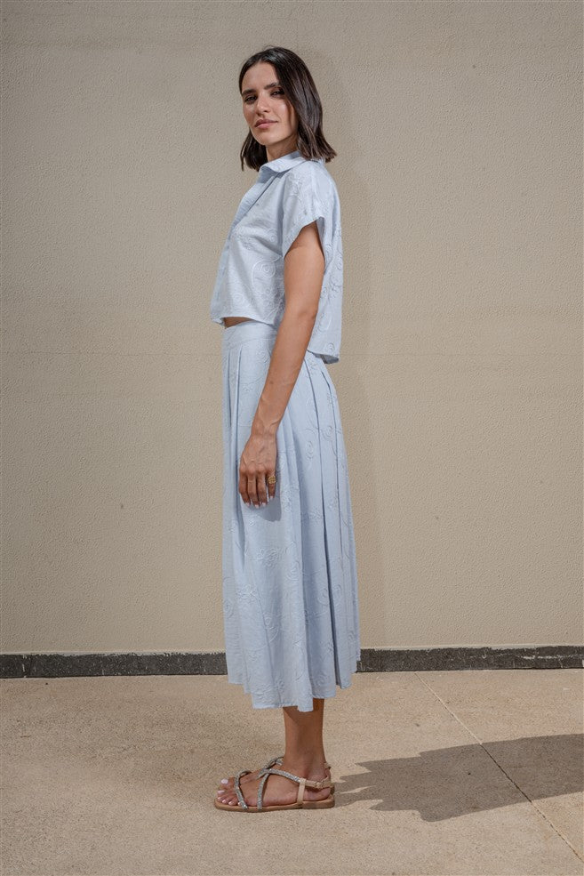 Long Sleeves Shirt with Frill-Trimmed Collar and Cuffs