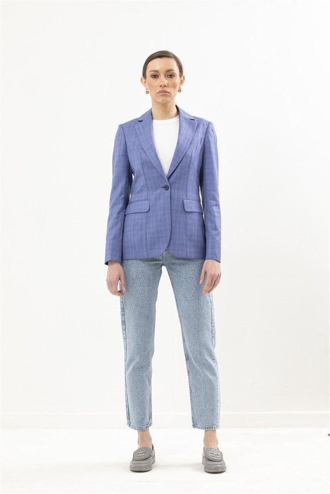 Denim Cotton Jacket with Corduroy Collar and Front Metal Buttons