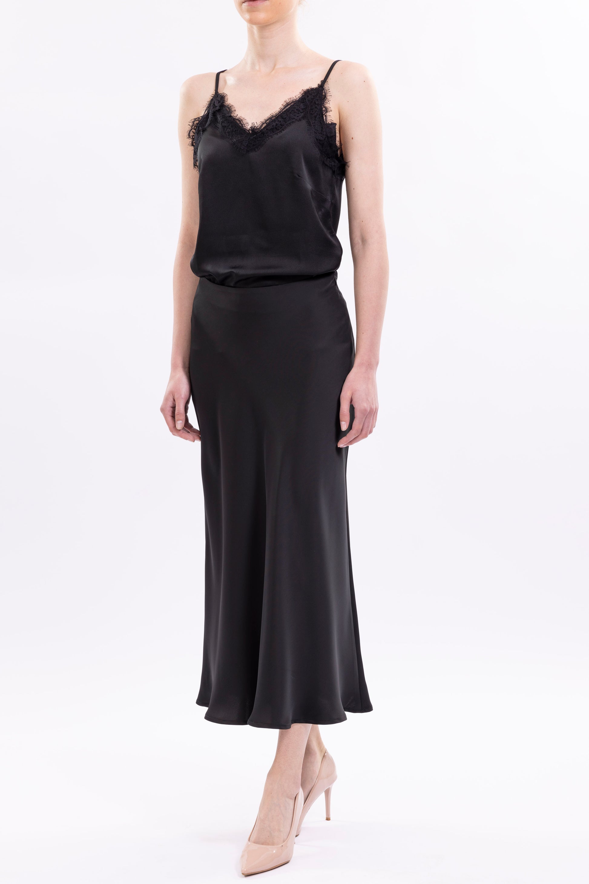 Satin Camisole Top Spaghetti Shoulder Straps, Lace-Trimmed V-Neck