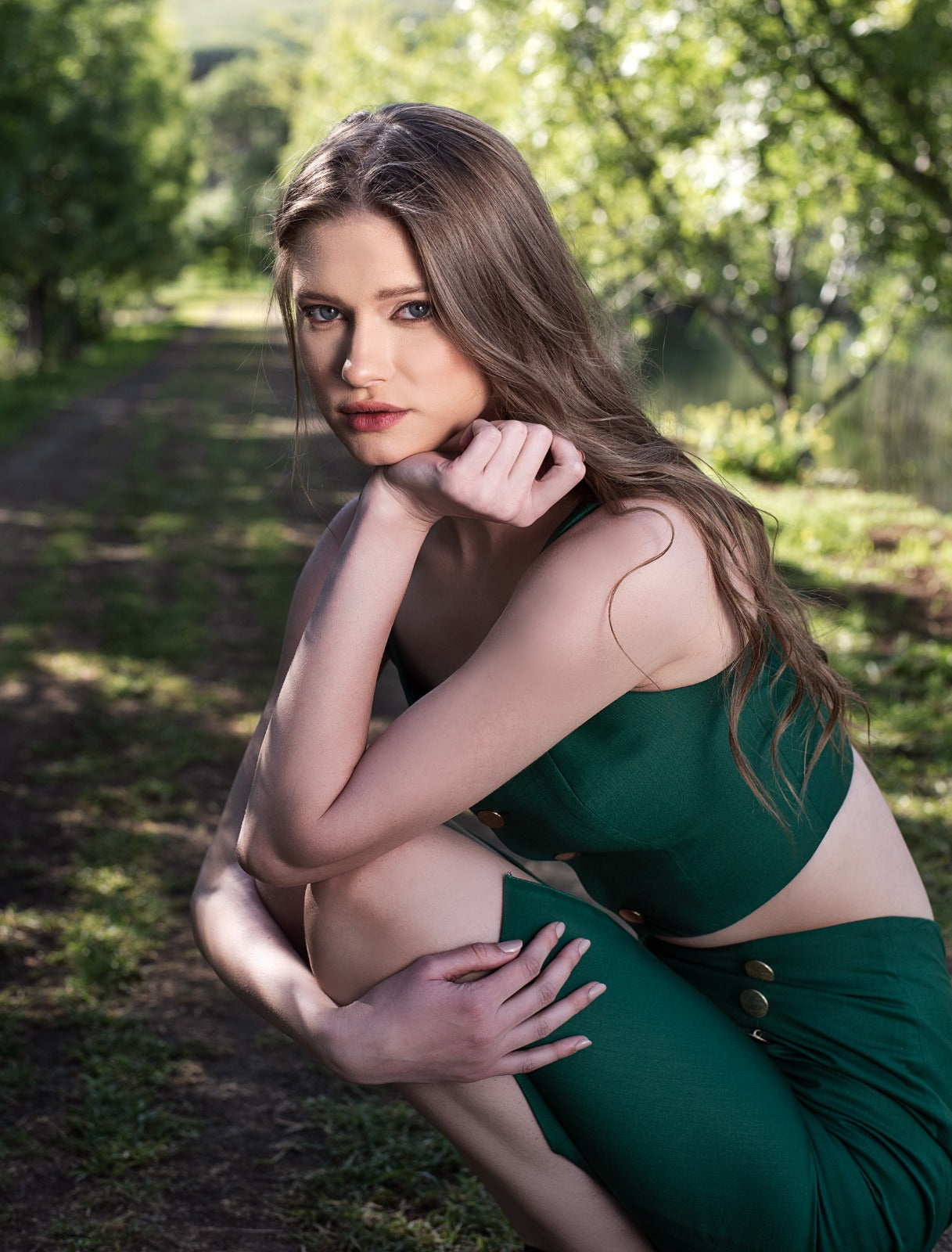 The model is wearing size 36.